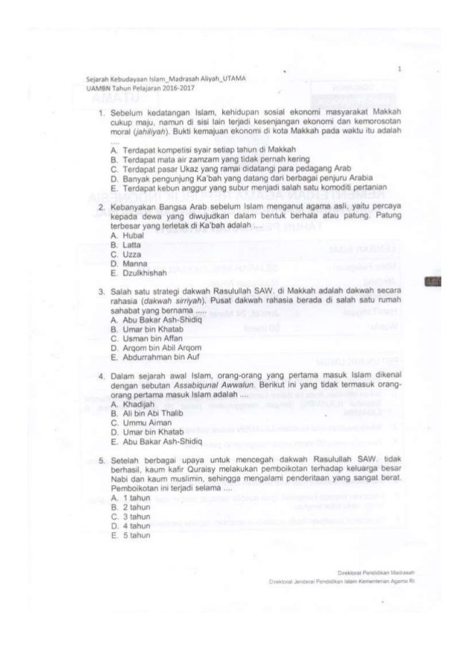 Selain menyediakan soal online, admin juga akan memberikan latihan soal uambn ski dalam bentuk dokumen pdf yang bisa sobat download secara gratis di postingan ini. Yapp, latihan soal uambn ski ma terbaru 2021 adalah mata ujian yang akan dibagikan pada postingan kali ini. Uambn ini diselenggarakan pada jum'at, 24 maret 2017. Keyakinan masyarakat arab sebelum islam datang adalah penyembah berhala, berhala besar yang. Sebelum kedatangan islam, kehidupan sosial ekonomi masyarakat makkah cukup maju, namun di sisi lain terjadi kesenjangan ekonomi dan kemorosotan moral (jahiliyah).